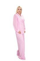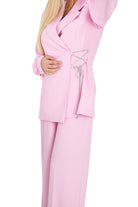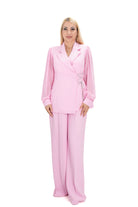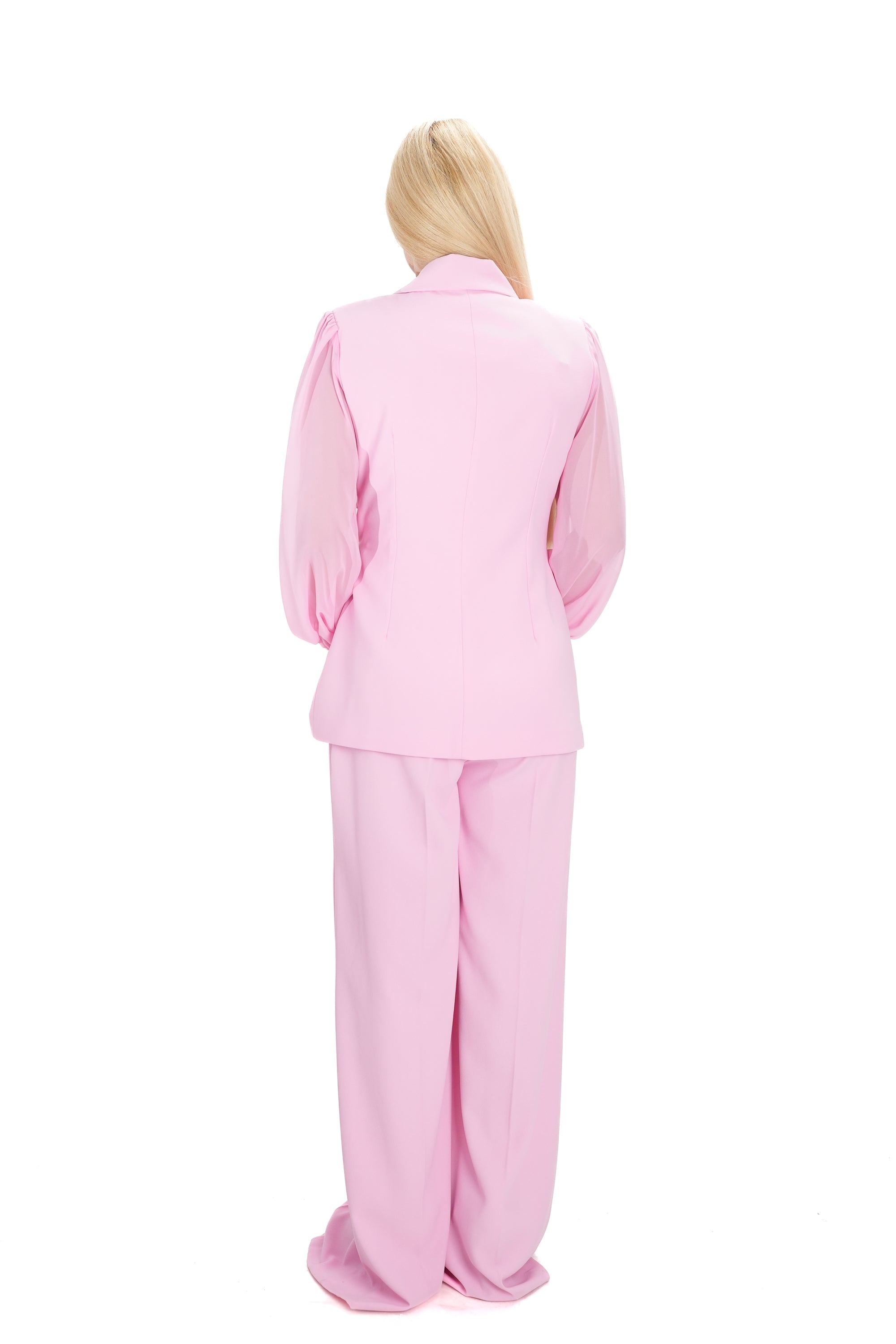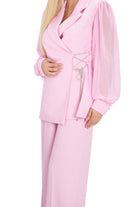 Дамски костюм в комплект от 2 части от широк панталон и сако с прозрачен ръкав в бебешко розово 8263