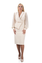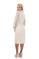 Дамска рокля елегантна миди с висящи кристали в бежово 2428