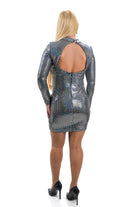 Дамска рокля къса по тялото в сребърно с холограмен ефект и гол гръб 2020-162