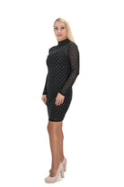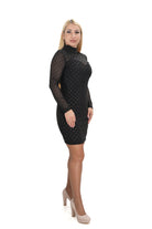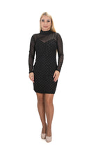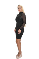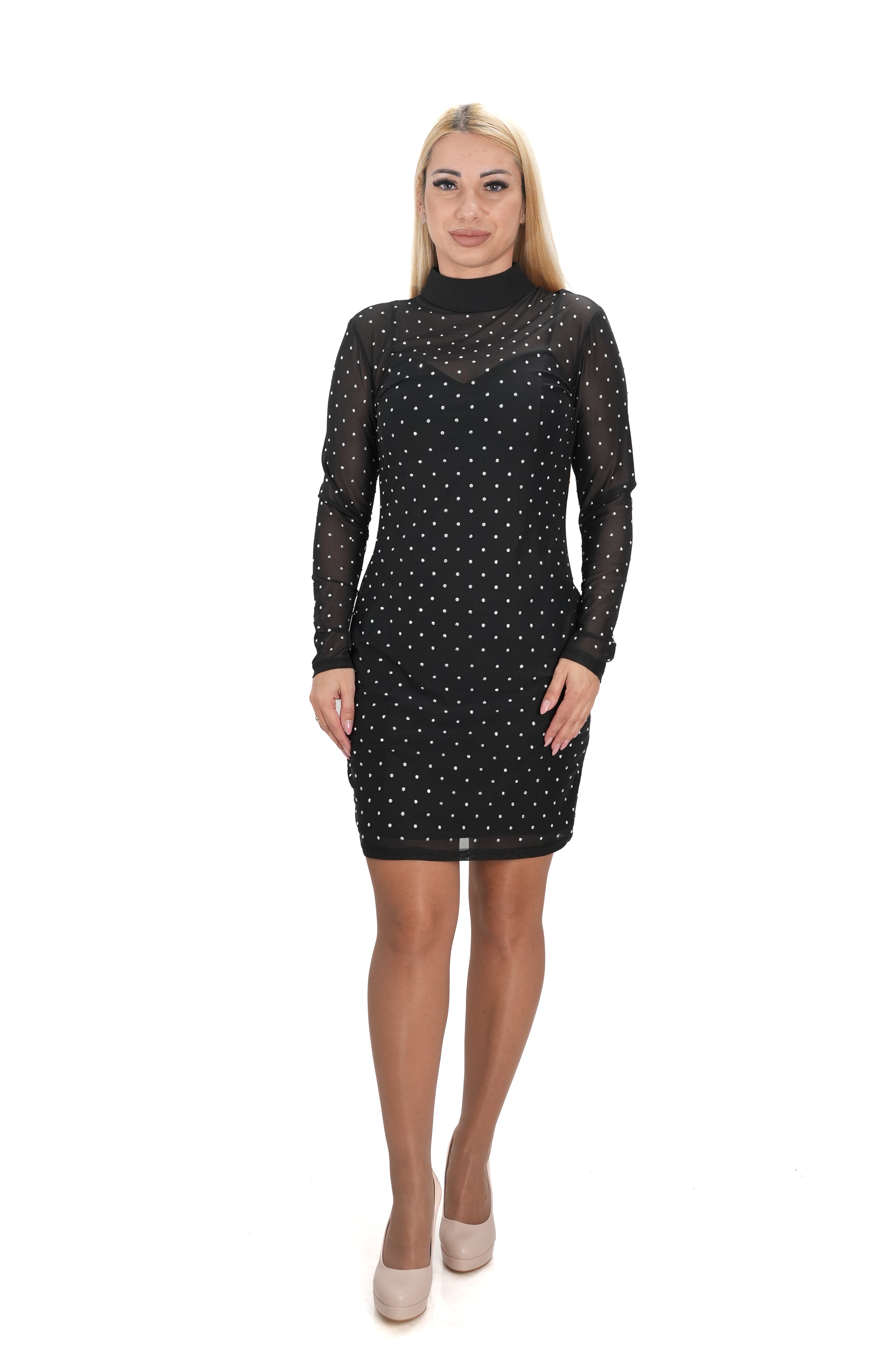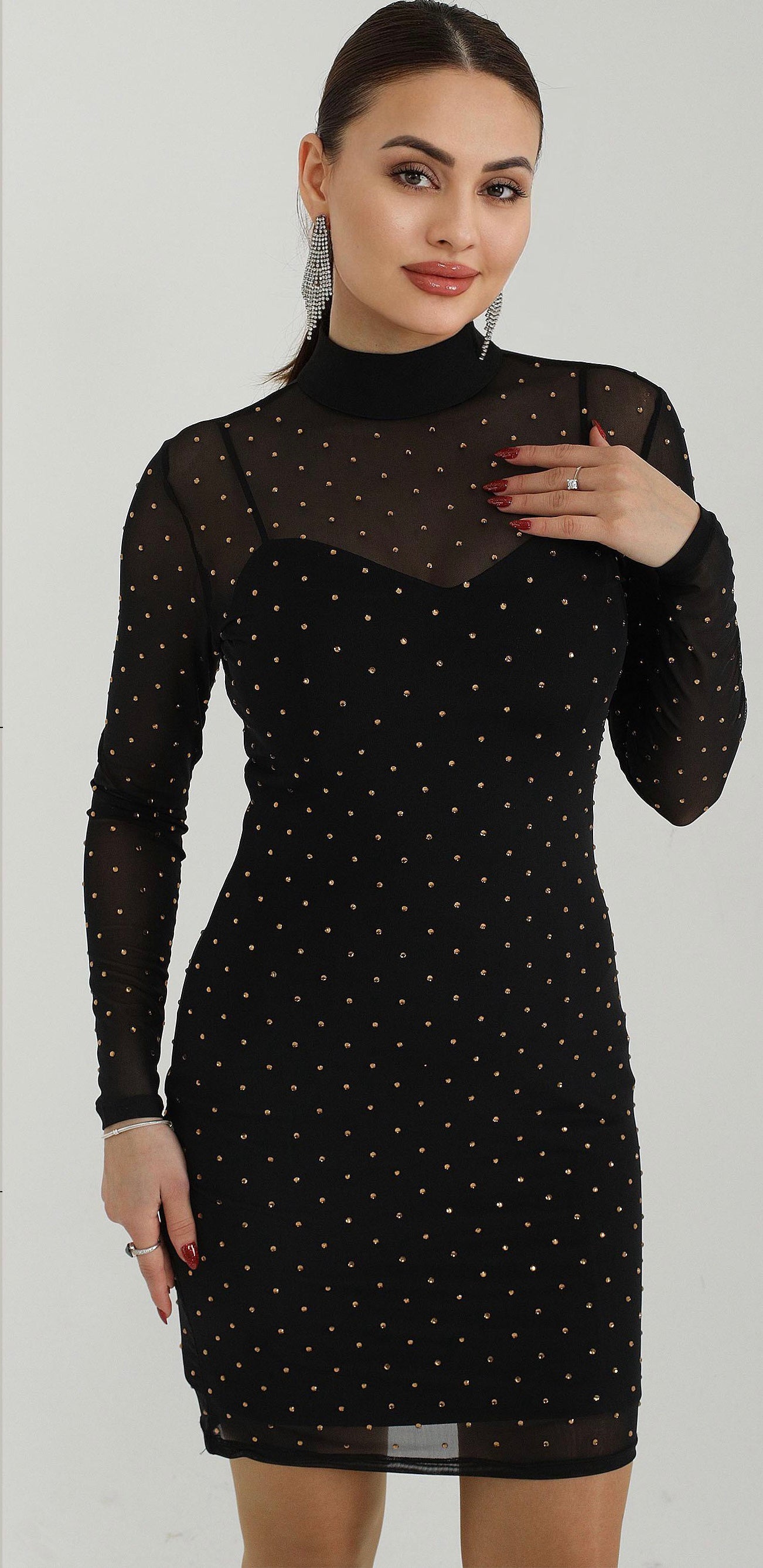 Дамска рокля къса черна от 2 части от горна мрежеста част със златни кристали и долна изчистена рокля 32461