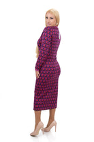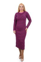 Дамска рокля ежедневна миди под коляното от фино плетиво в цикламено и синьо 01-5411