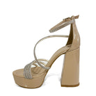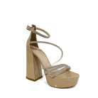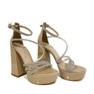 Дамски сандали с дебел ток на платформа и декорация от сребърни камъчета в бежово 661-S40-Bej