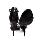 Дамски сандали с тънък ток в черно с камъчета в цвят металик 05-602-1-S40