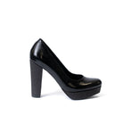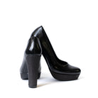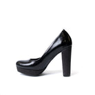 Официални обувки в черно на платформа с нежен брокат и с висок дебел ток с брокат.Заоблен връх.