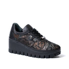 Дамски обувки от естествена кожа със средна платформа и цветен десен в черно 45-505-01-81