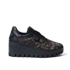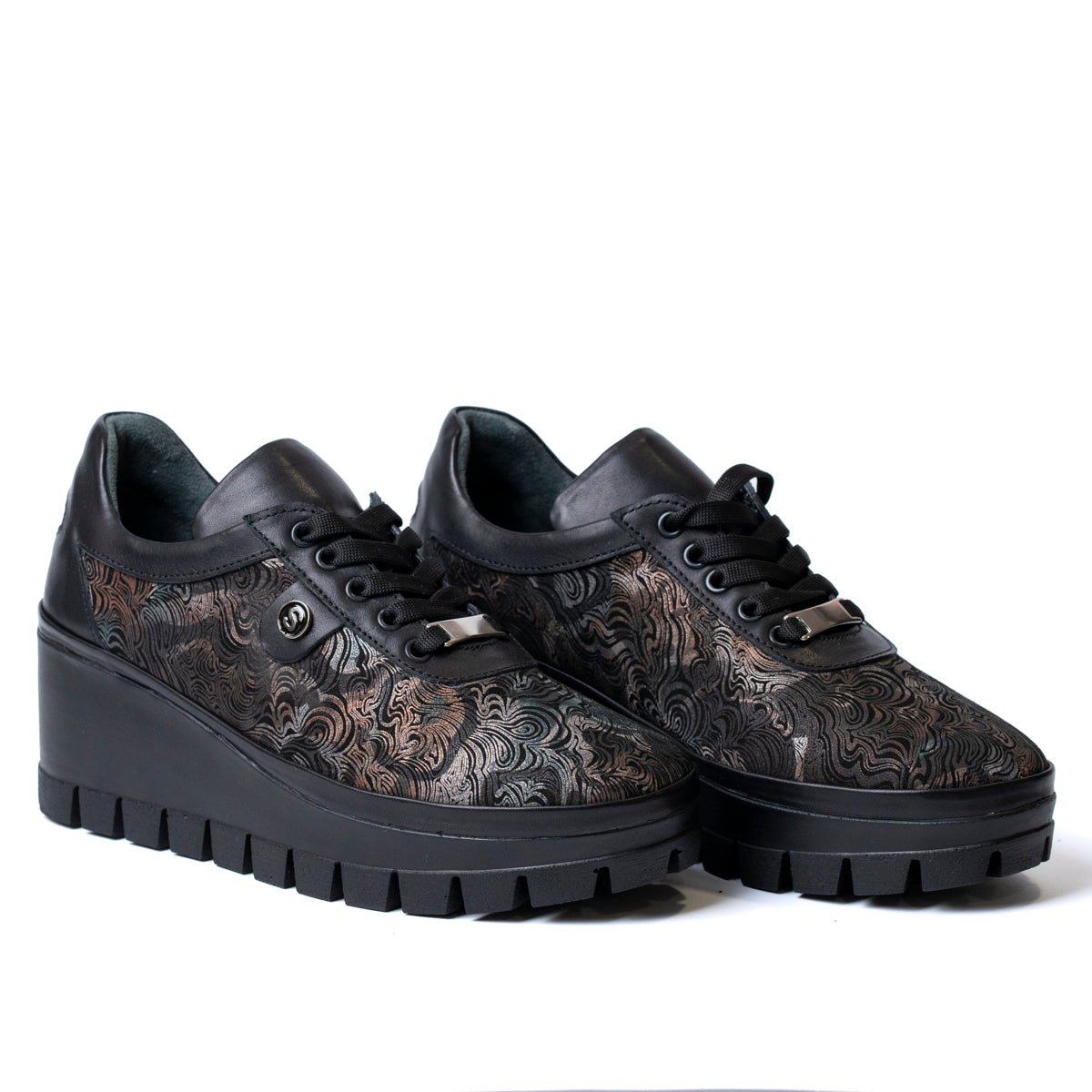 Обувки от естествена кожа в черно със средна платформа и цветен десен.