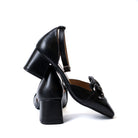 Дамски обувки от естествена кожа с нисък дебел ток 7008 Black