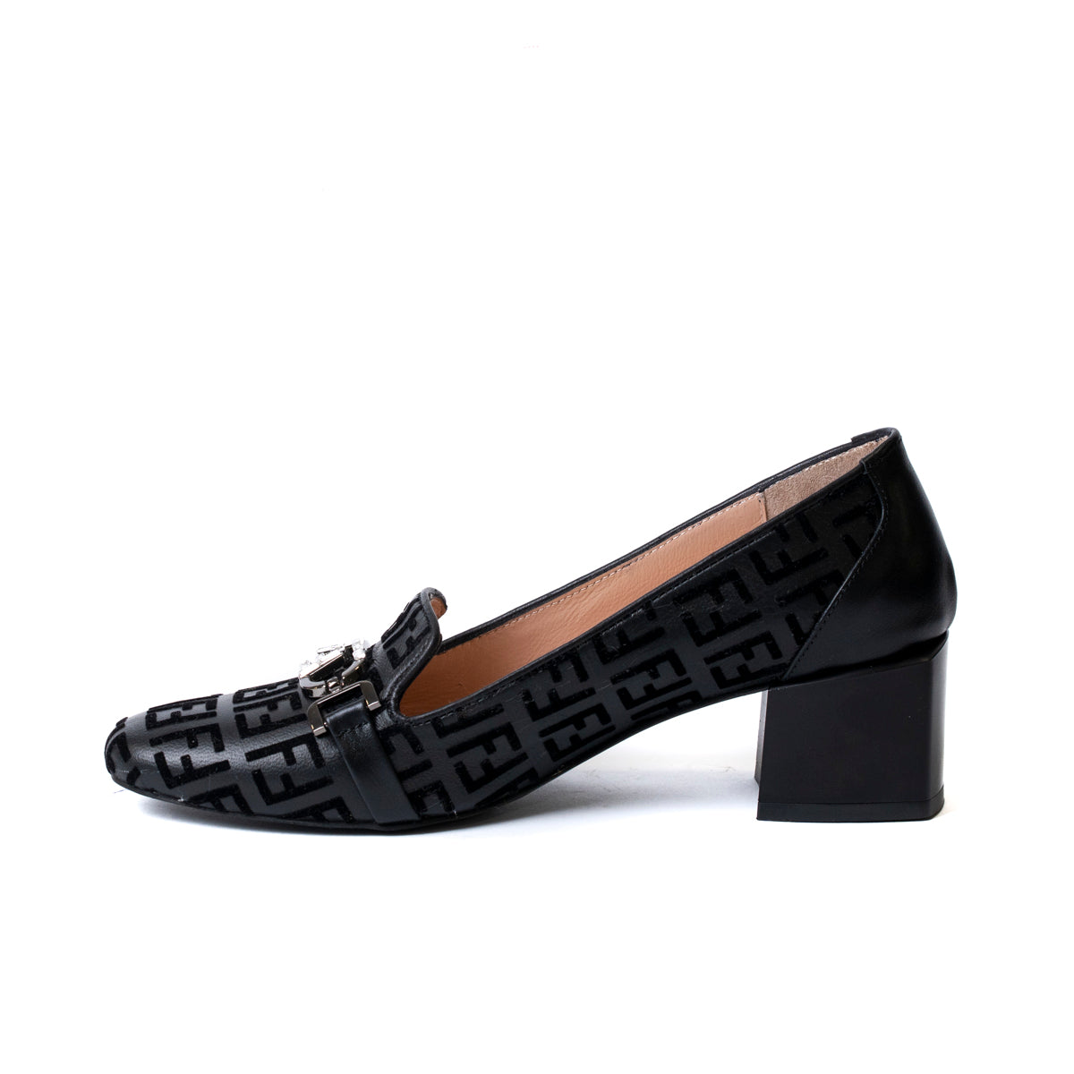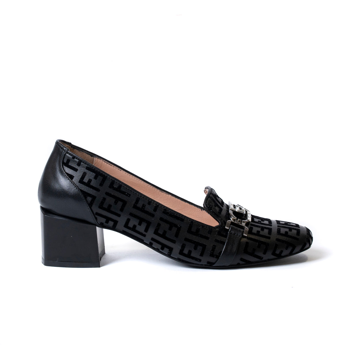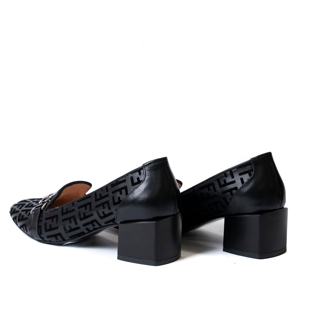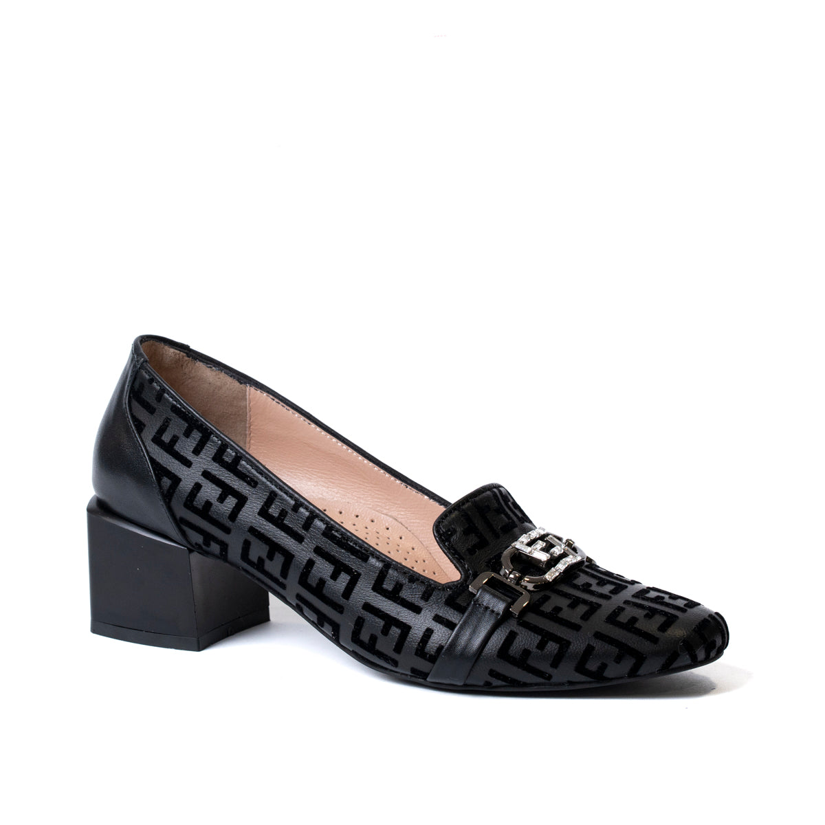 Дамски обувки с нисък дебел ток от естествена кожа елегантни и кадифени букви 74-255-R-239 F.F.