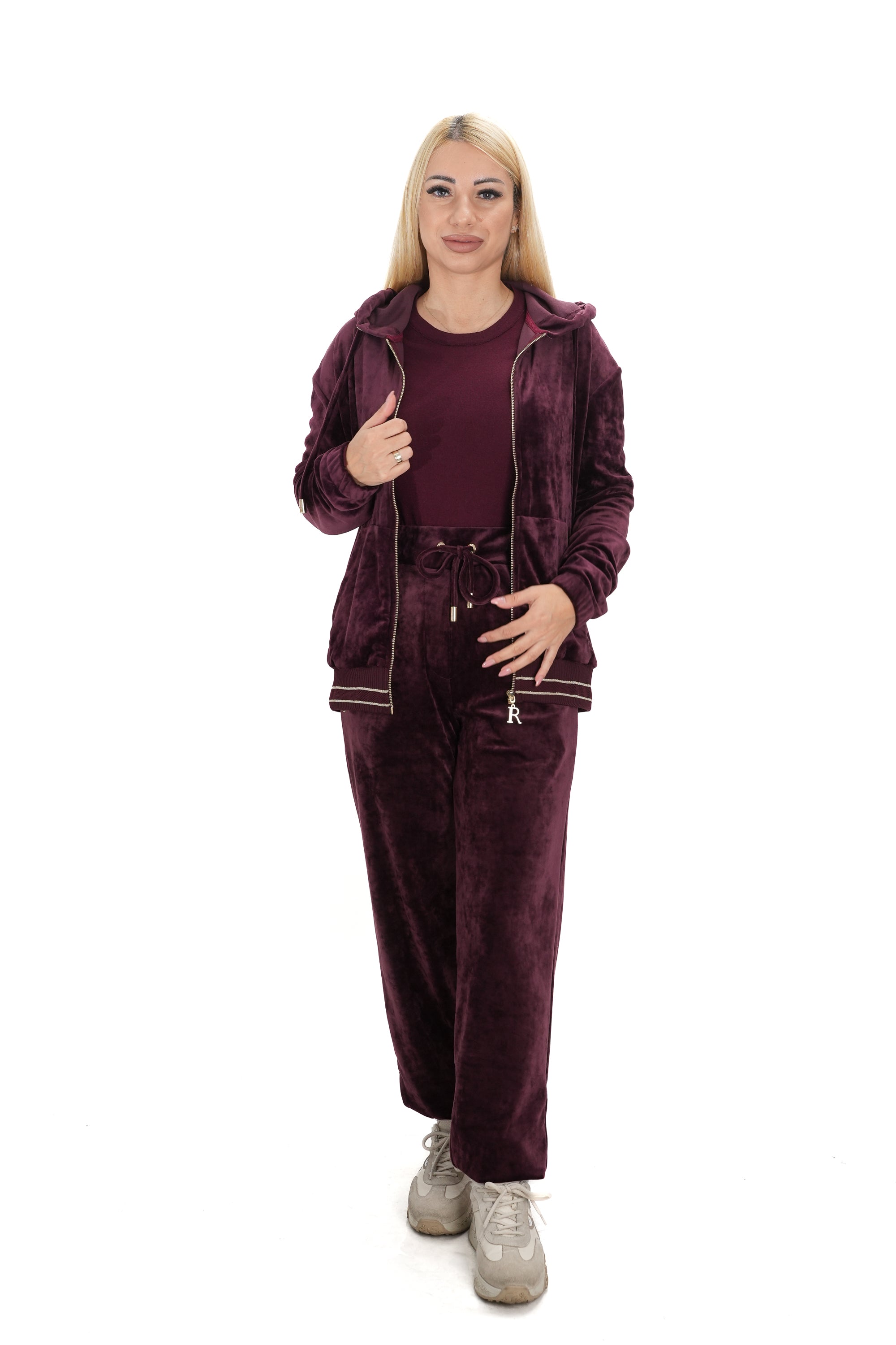 Дамски комплект от 2 части спортен от мек плюш в Бордо 37868-004