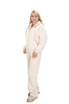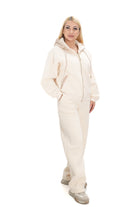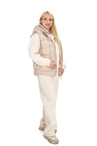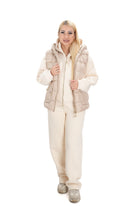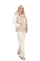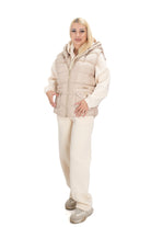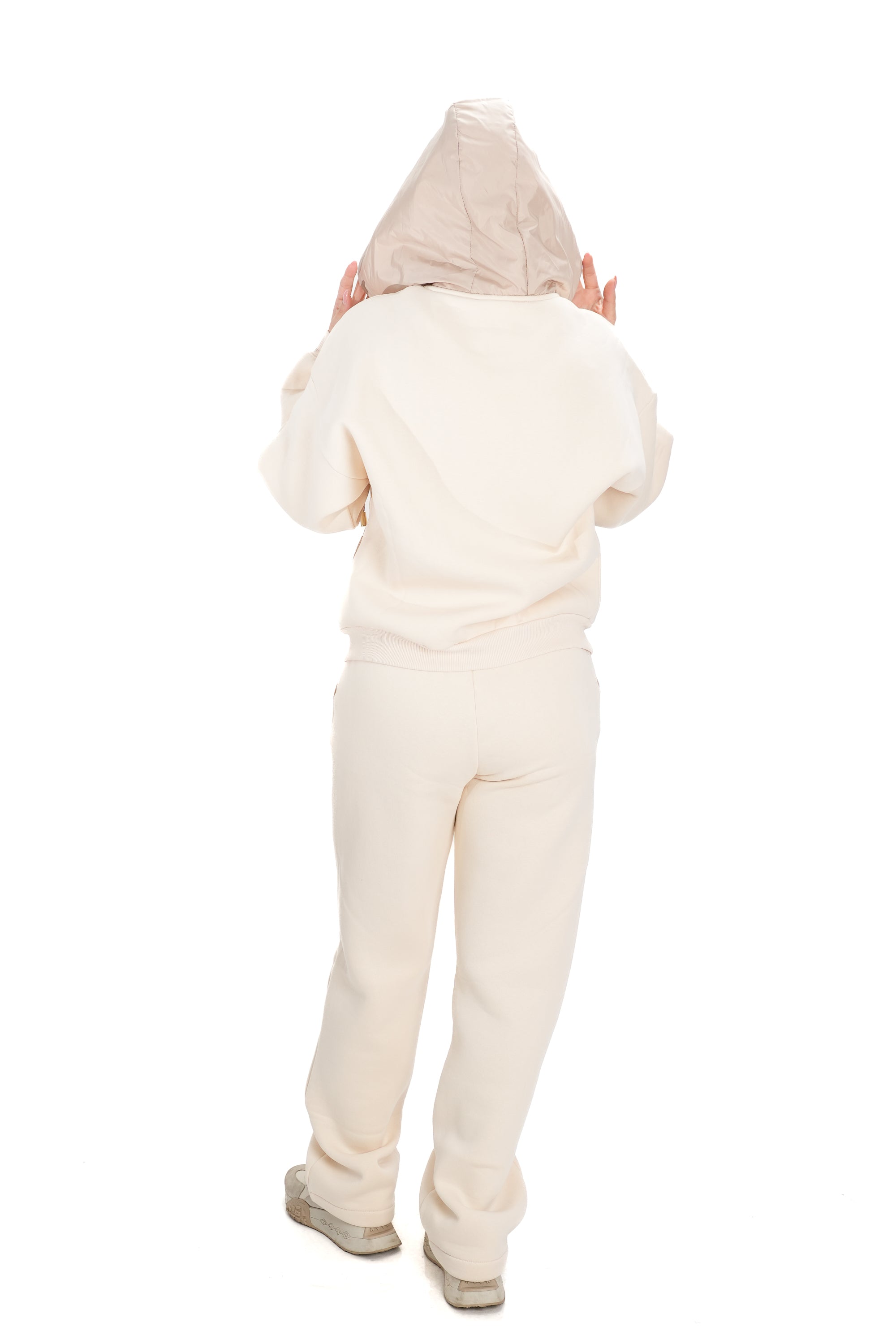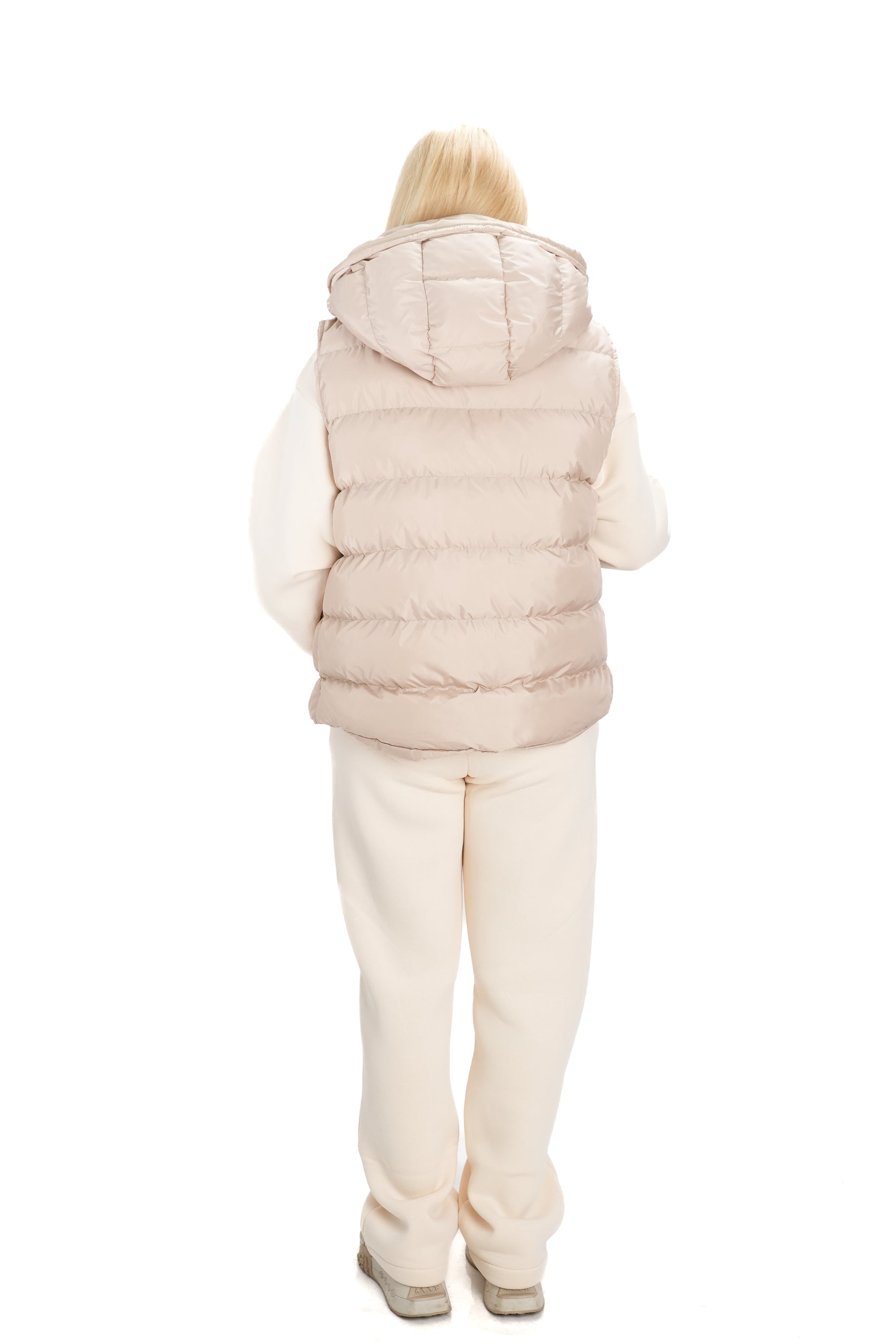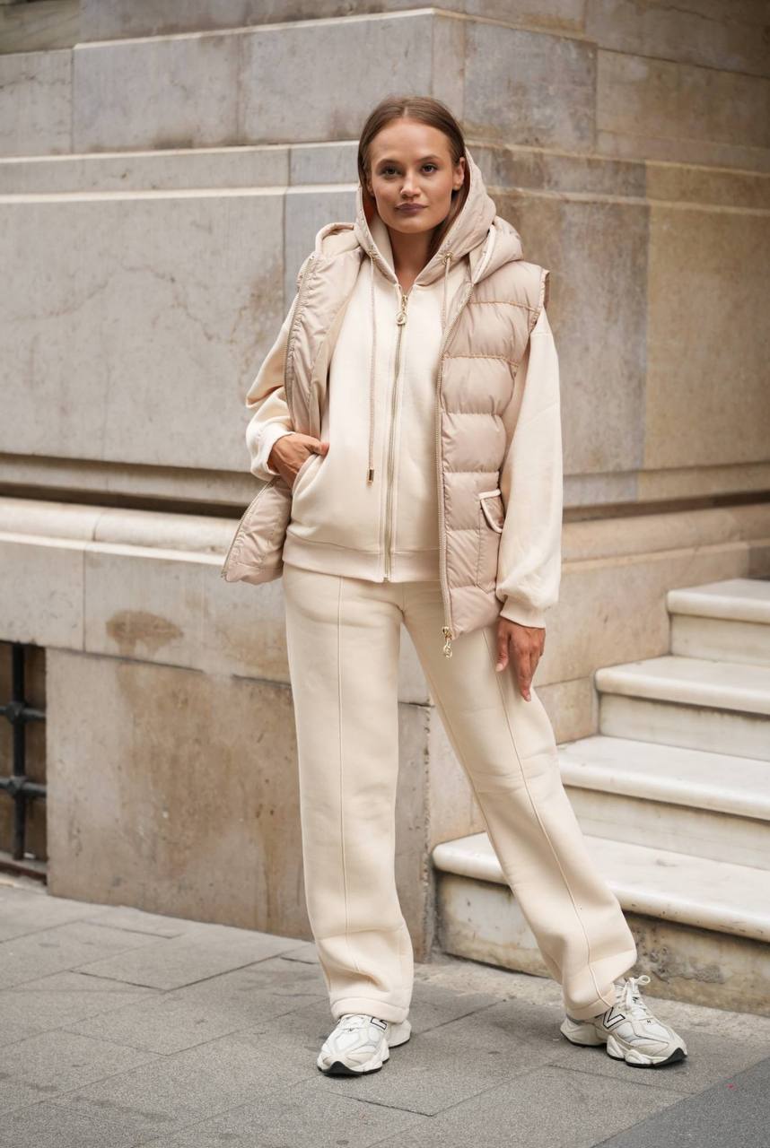 Дамски комплект от 3 части спортен ватиран в кремав цвят с бежов елек с качулка 37871-002