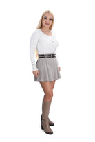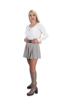 Дамски костюм от 2 части – пола плисе и удължено сако овърсайз, бежов меланж 20094, съчетава комфорт, стил и елегантност за всеки ден.