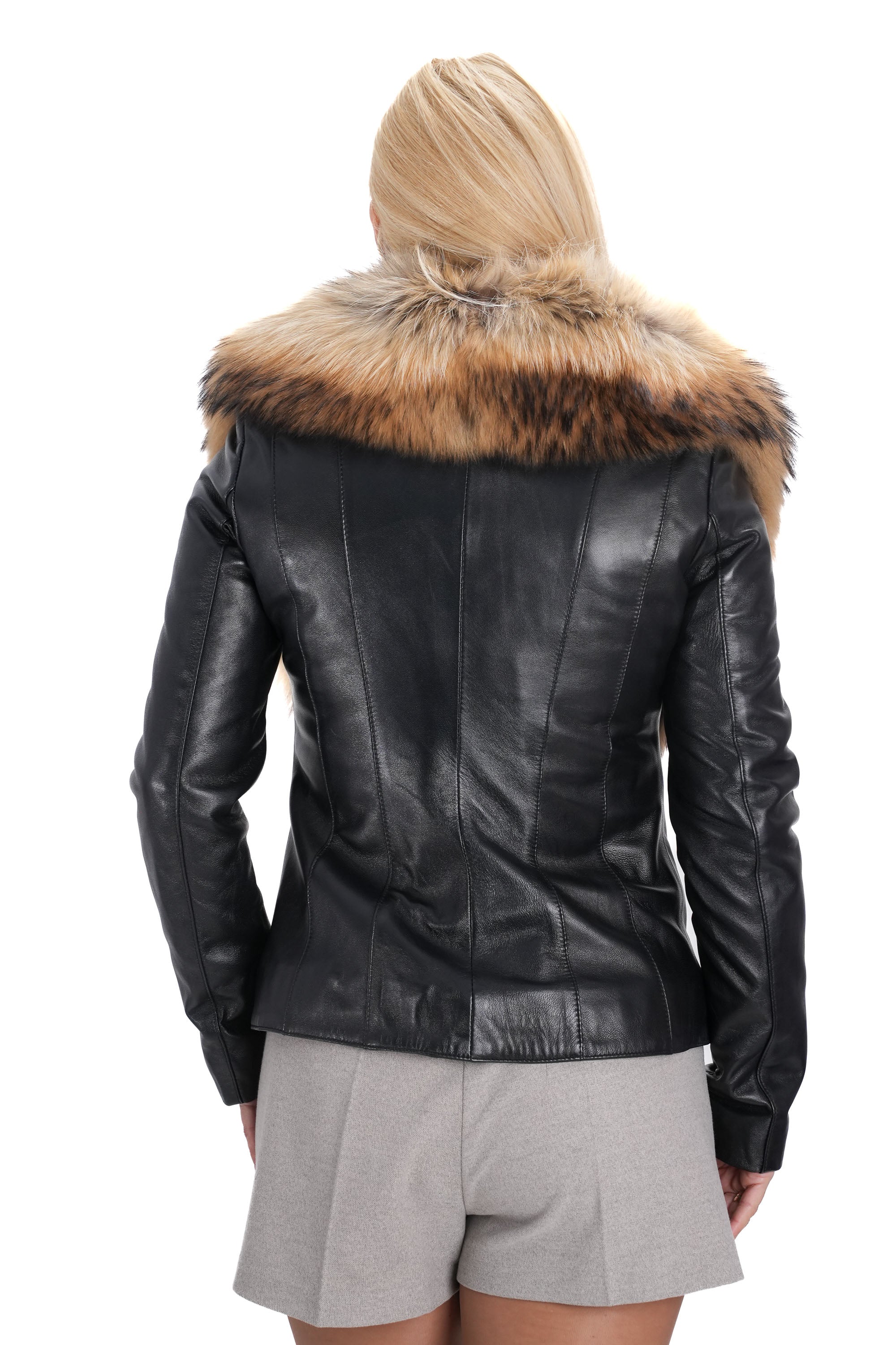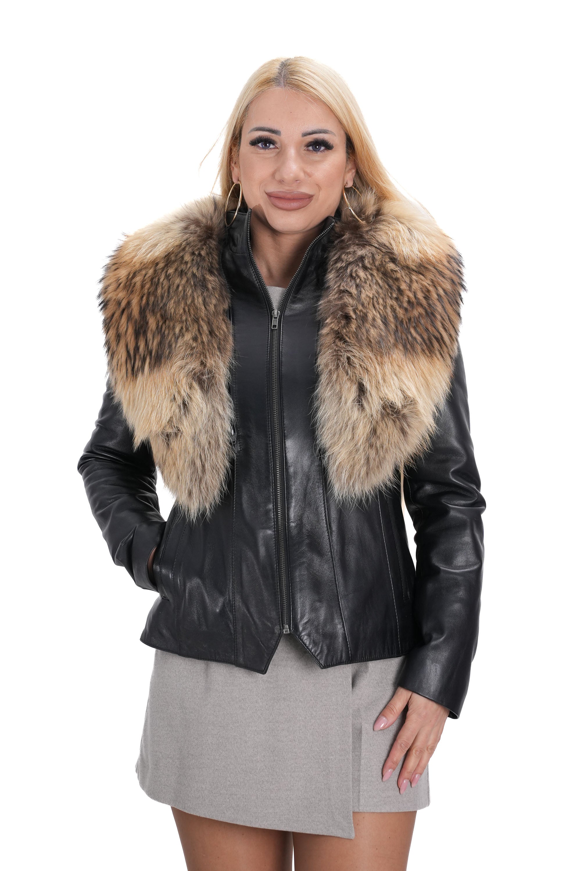 Дамско яке от естествена кожа с натурална яка,която се сваля с цип B-906