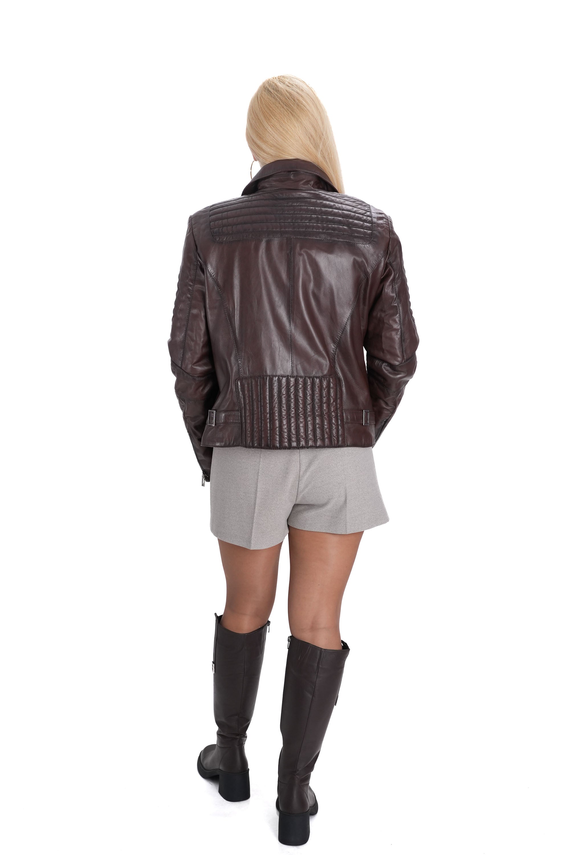 Дамско яке от естествена кожа в кафяво B-74 Големи размери