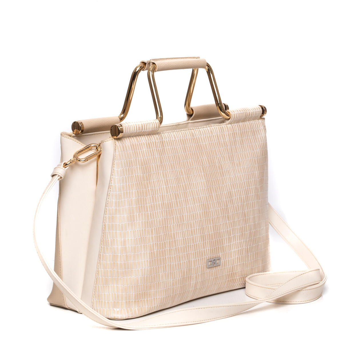 Дамска чанта с дълга дръжка за през рамо в бежово кремаво 212 GR 770 T