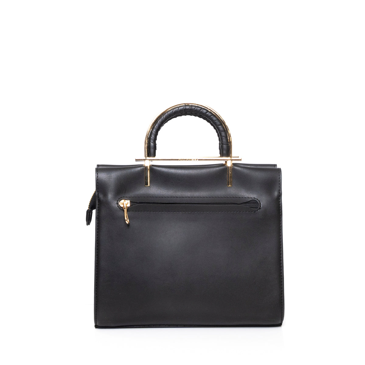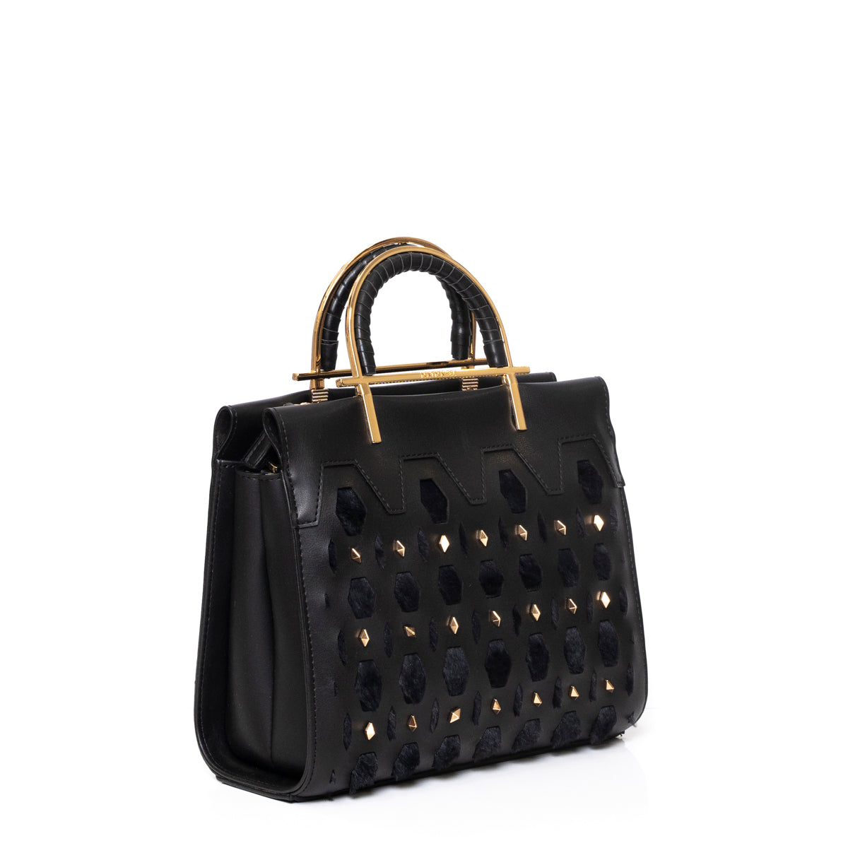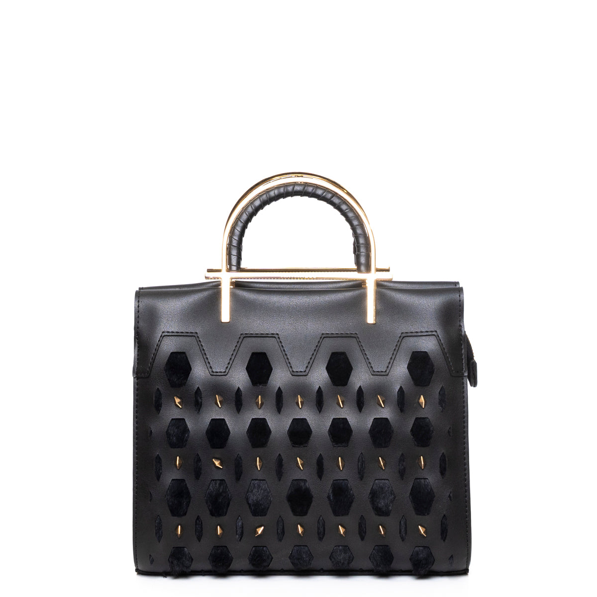 Дамска чанта с дръжка за през рамо в черно с декорация от пух и капси 221 VN 480 T