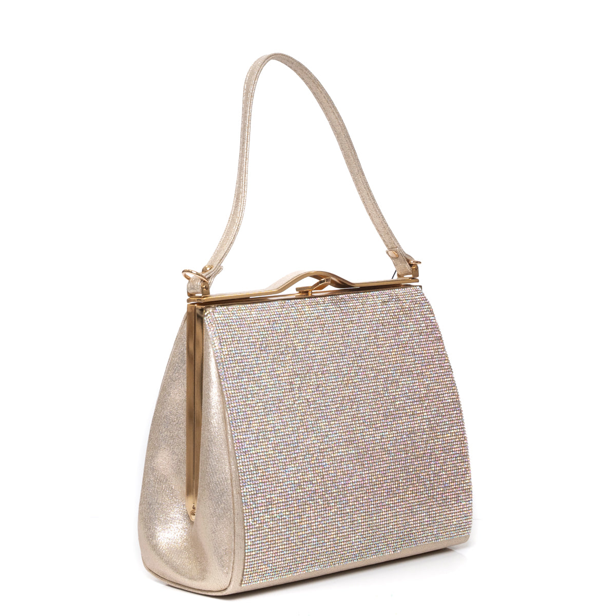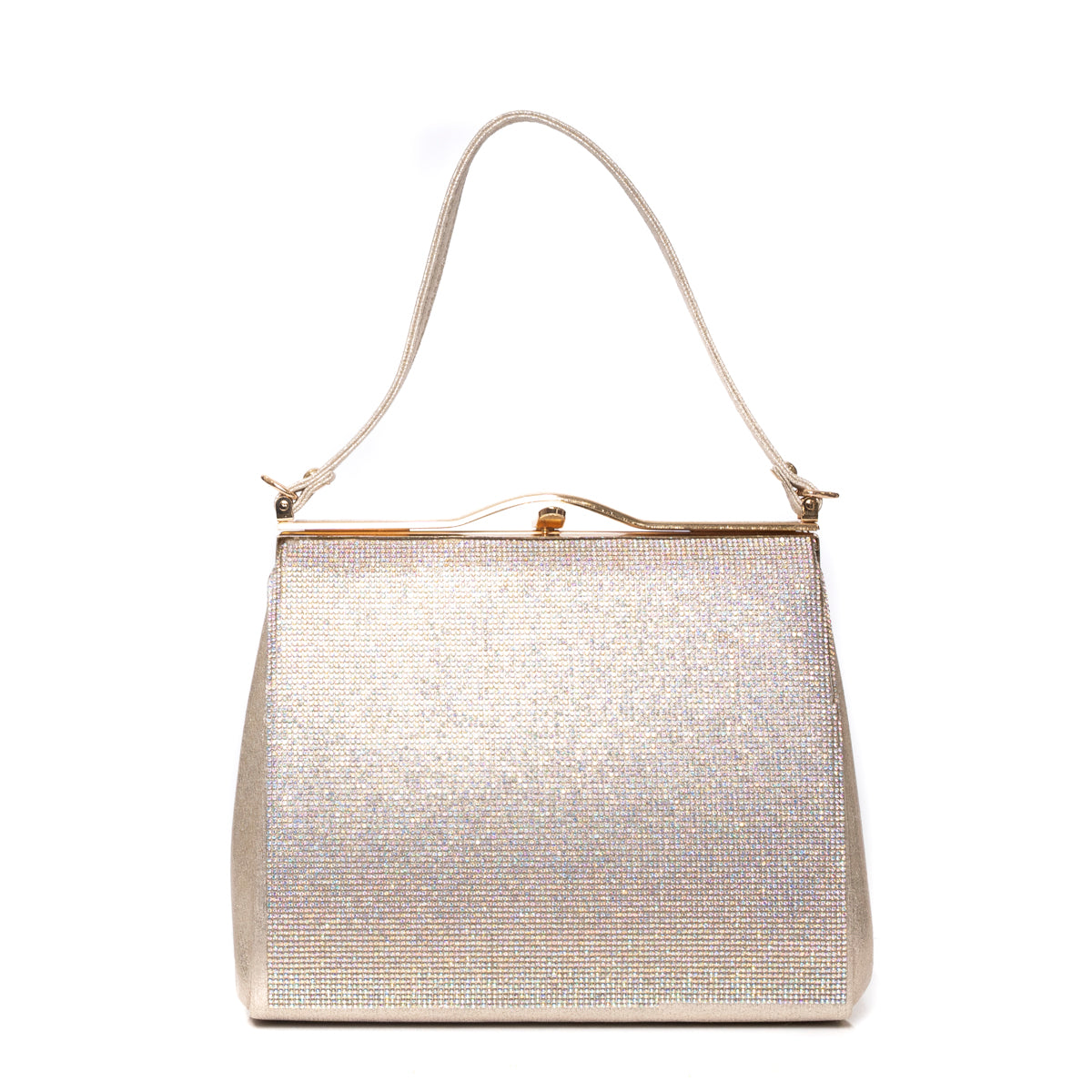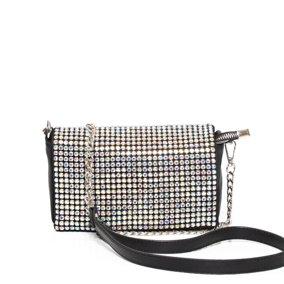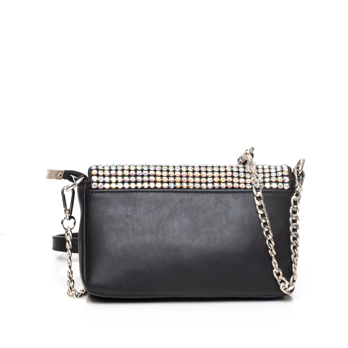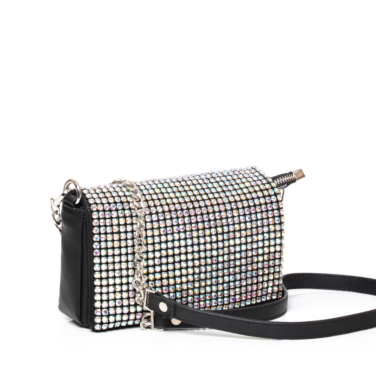 Дамска чанта с дълга дръжка за през рамо в черно с кристали 6078