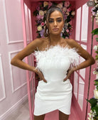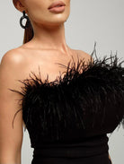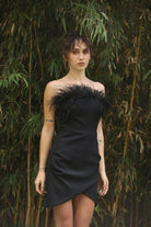 Дамска рокля къса елегантна с пера на деколтето в черно 20008