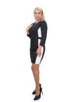 Дамска рокля къса елегантна по тялото в черно-бяло 19337