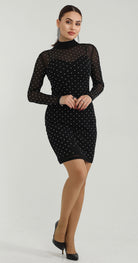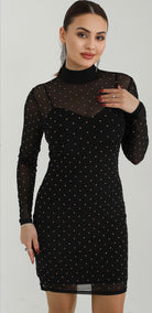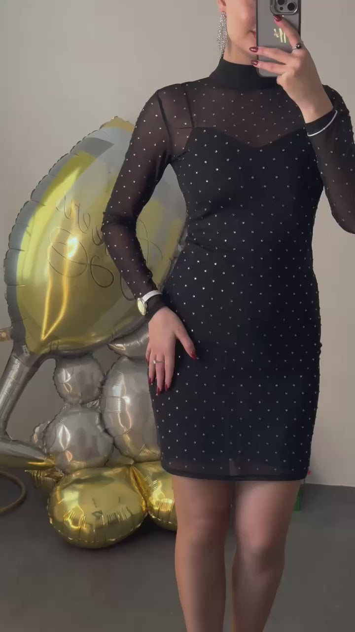 Дамска рокля къса елегантна от 2 части с мрежа с кристали в сребърно 32461